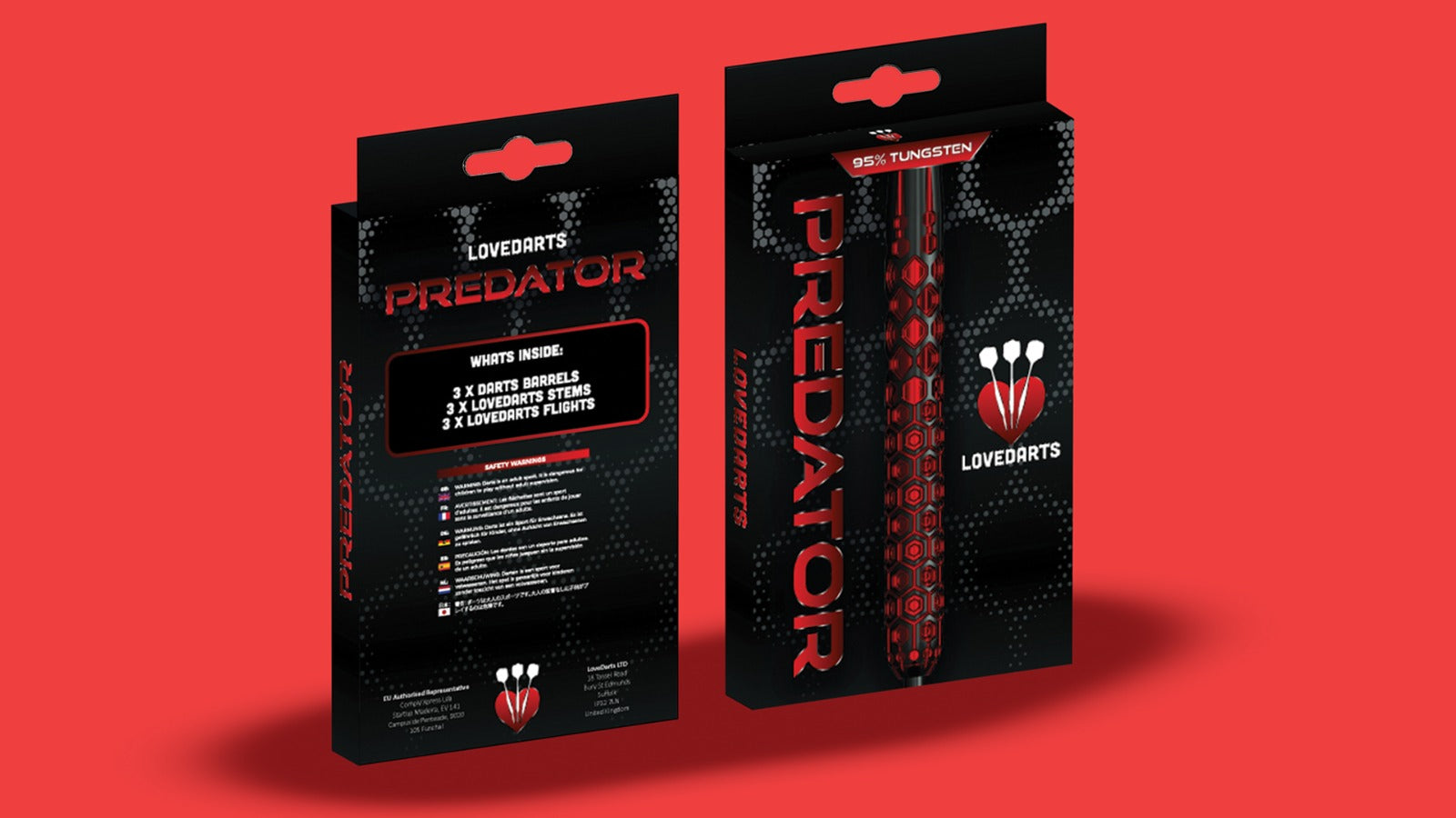 Paired with the new LoveDarts black stems featuring silver detailing, and finished with diamond-cut points for precision board penetration, the visual identity is bold and unmistakable: red and black dominance that nods to both the Predator boots and the Predator on-screen.